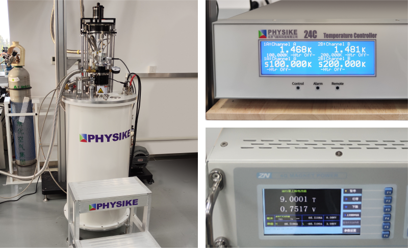 该变温超导磁体初始降温时间:<16小时,变温范围:1.5K-300K,磁场范围:±9T。该系统还提供自恒压气体处理系统,降温更快,温度稳定性更好,换样后再降温时间(从室温到1.5K)小于100分钟,在整个温区范围温度稳定性优于±10mK。